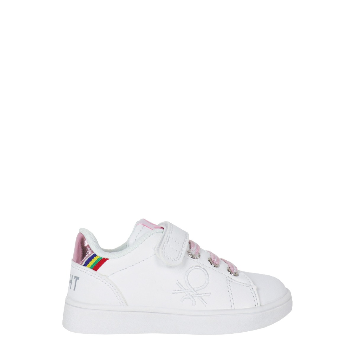 United Colors of Benetton παιδικό sneaker σε λευκό χρώμα με ροζ λεπτομέρειες κατασκευασμένο από οικολογικό δέρμα. Ύψος σόλας 2εκ.