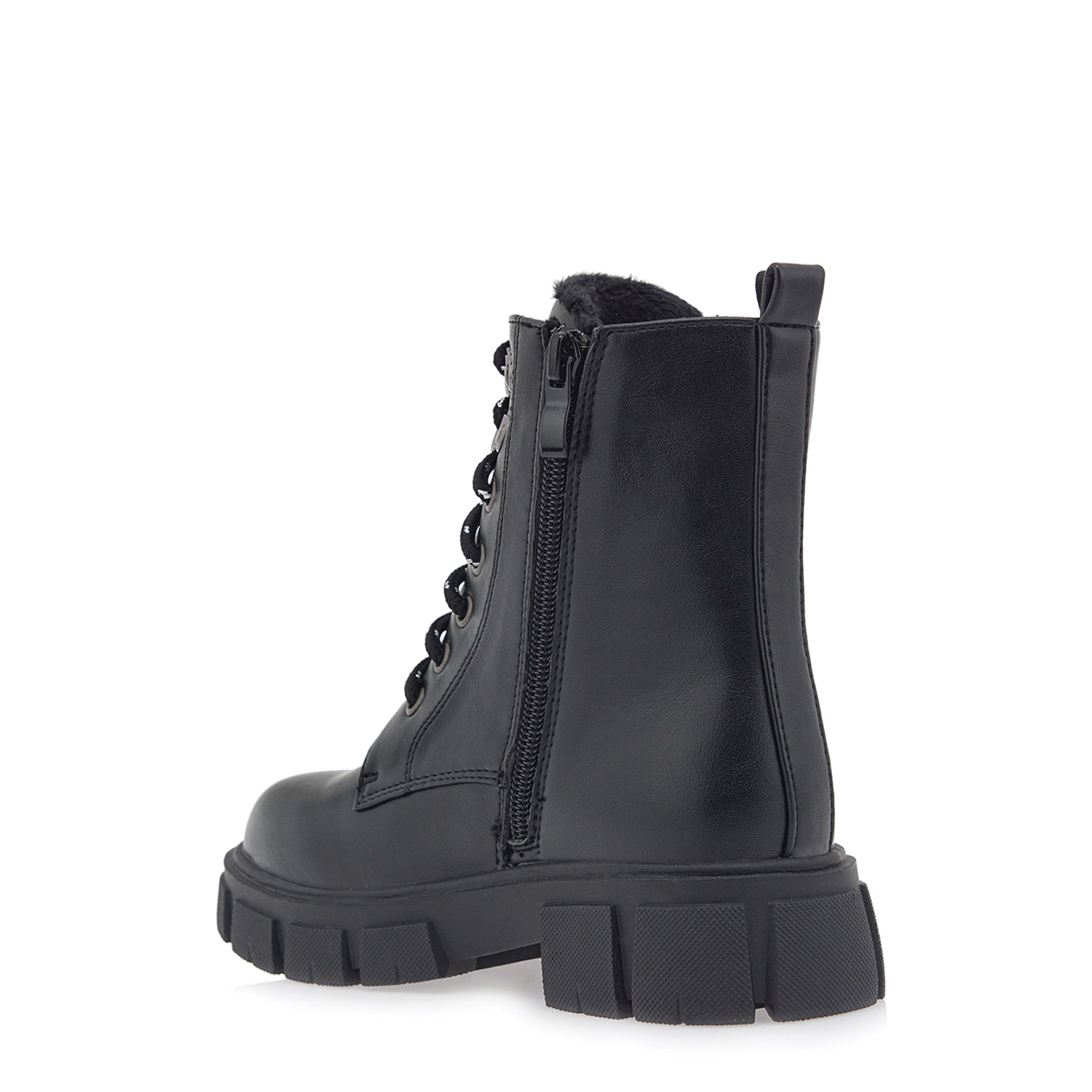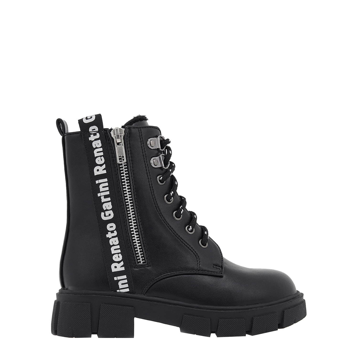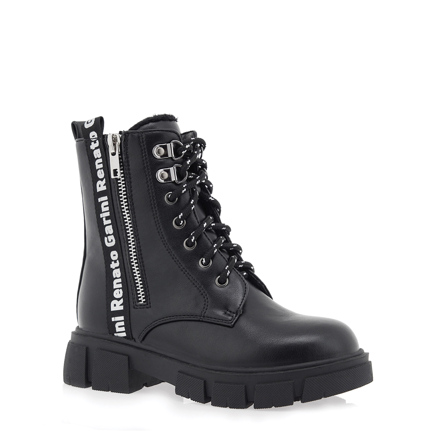 Renato Garini Παιδικό Μποτάκι, σε μαύρο χρώμα, κατασκευασμένο από οικολογικό δέρμα. Ύψος σόλας 3εκ.