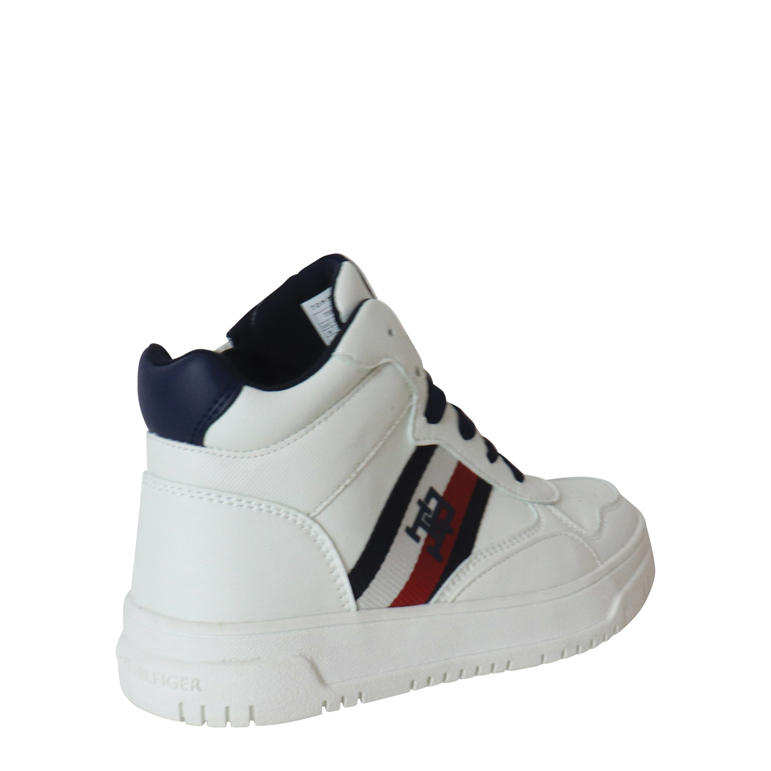 Tommy Hilfiger παιδικό μποτάκι σε λευκό χρώμα κατασκευασμένο απο  οικολογικό δέρμα  με ύψος σολας 3εκ