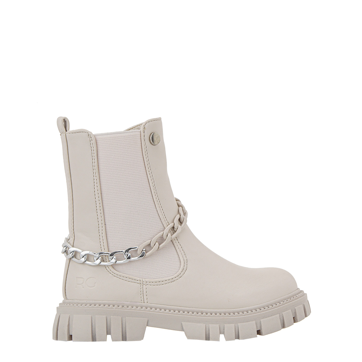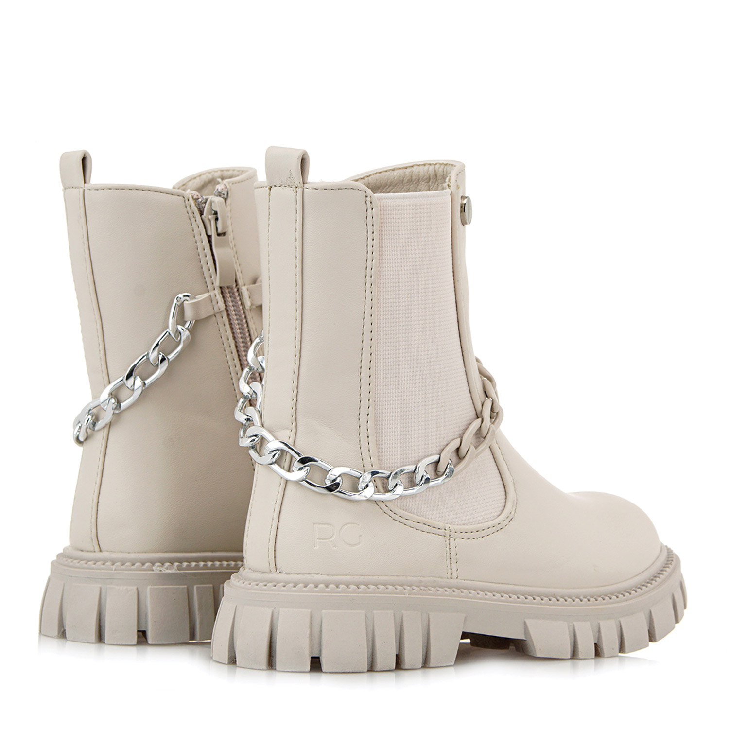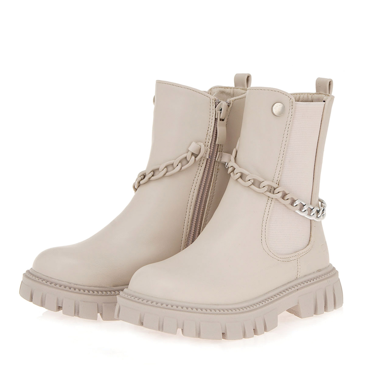 Renato Garini παιδικό μποτάκι, σε μπεζ χρώμα, κατασκευασμένο από οικολογικό δέρμα. Ύψος σόλας 3εκ.