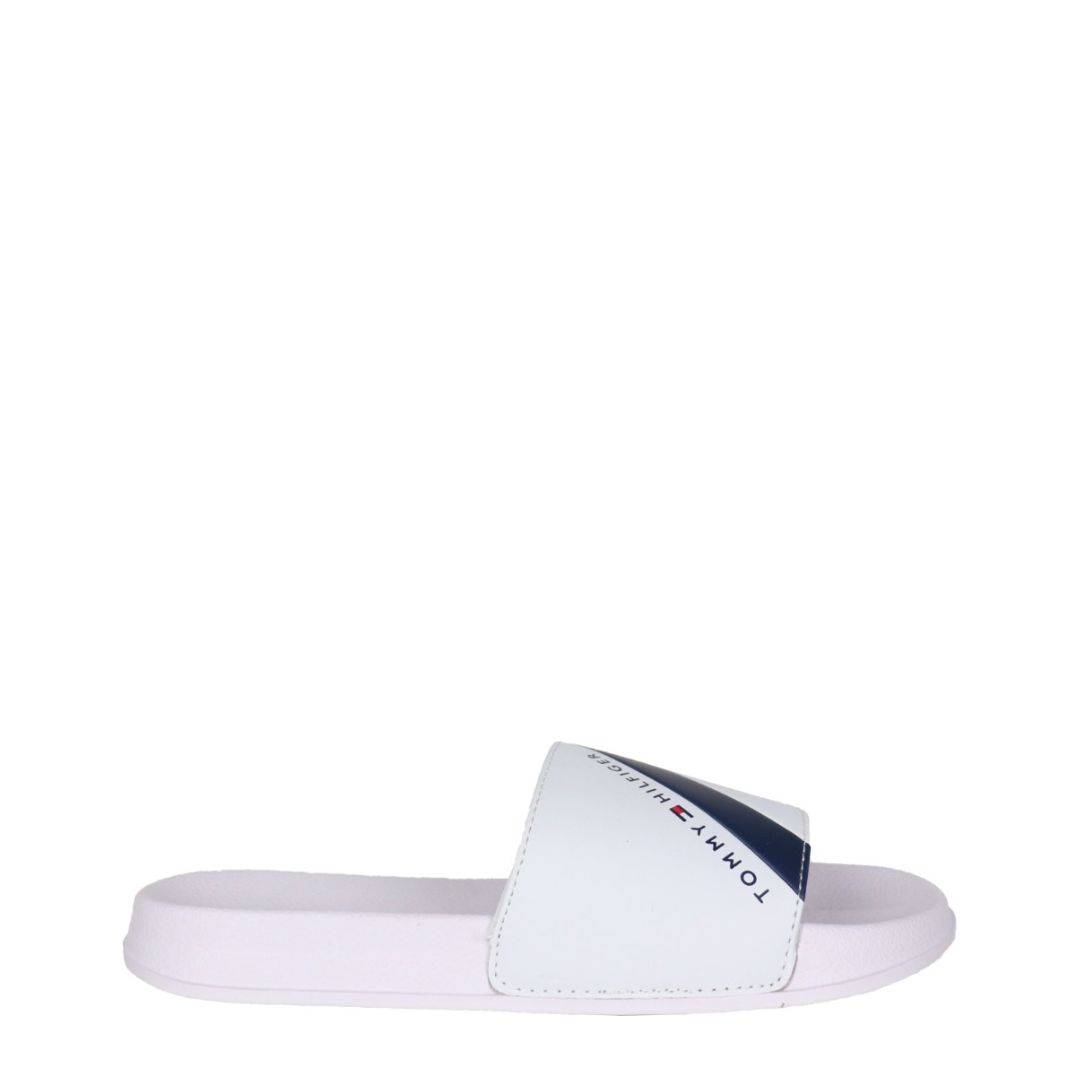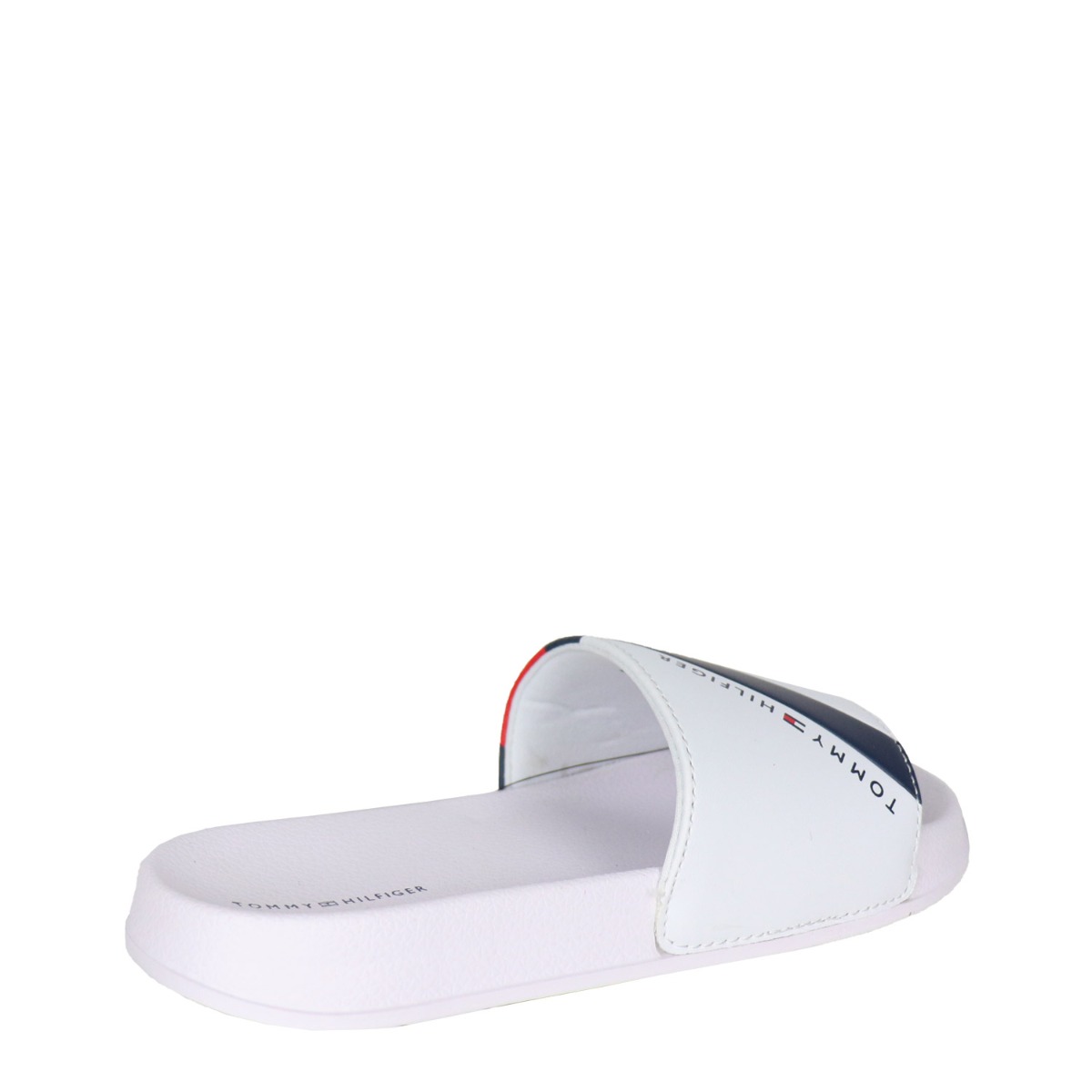 Tommy Hilfiger παιδικά slides σε λευκό χρώμα κατασκευασμένα από οικολογικό δέρμα. Ύψος σόλας 1 εκ.