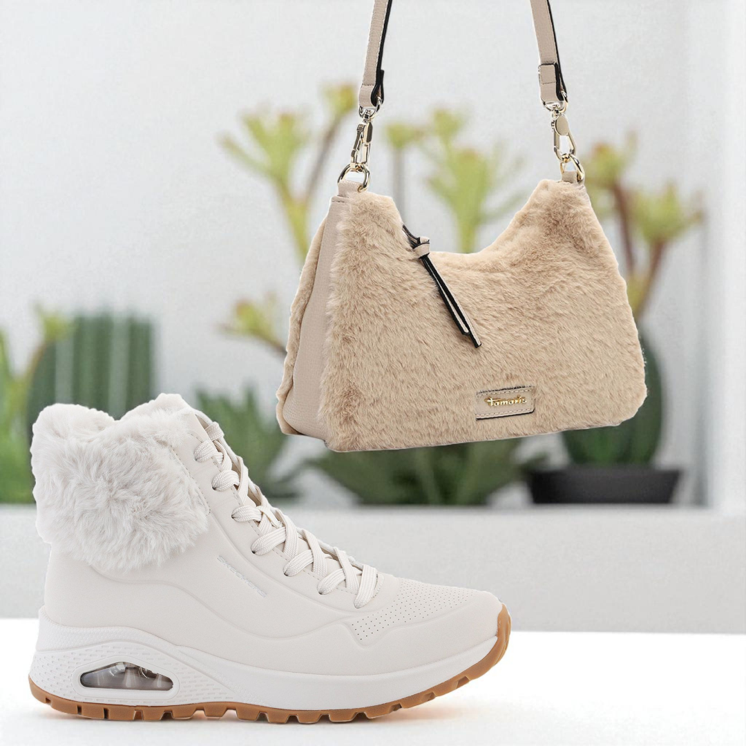 Σετ γυναικείο με έκπτωση. Αποτελείται από Skechers γυναικείο sneaker μποτάκι και Tamaris γυναικεία τσάντα ώμου.