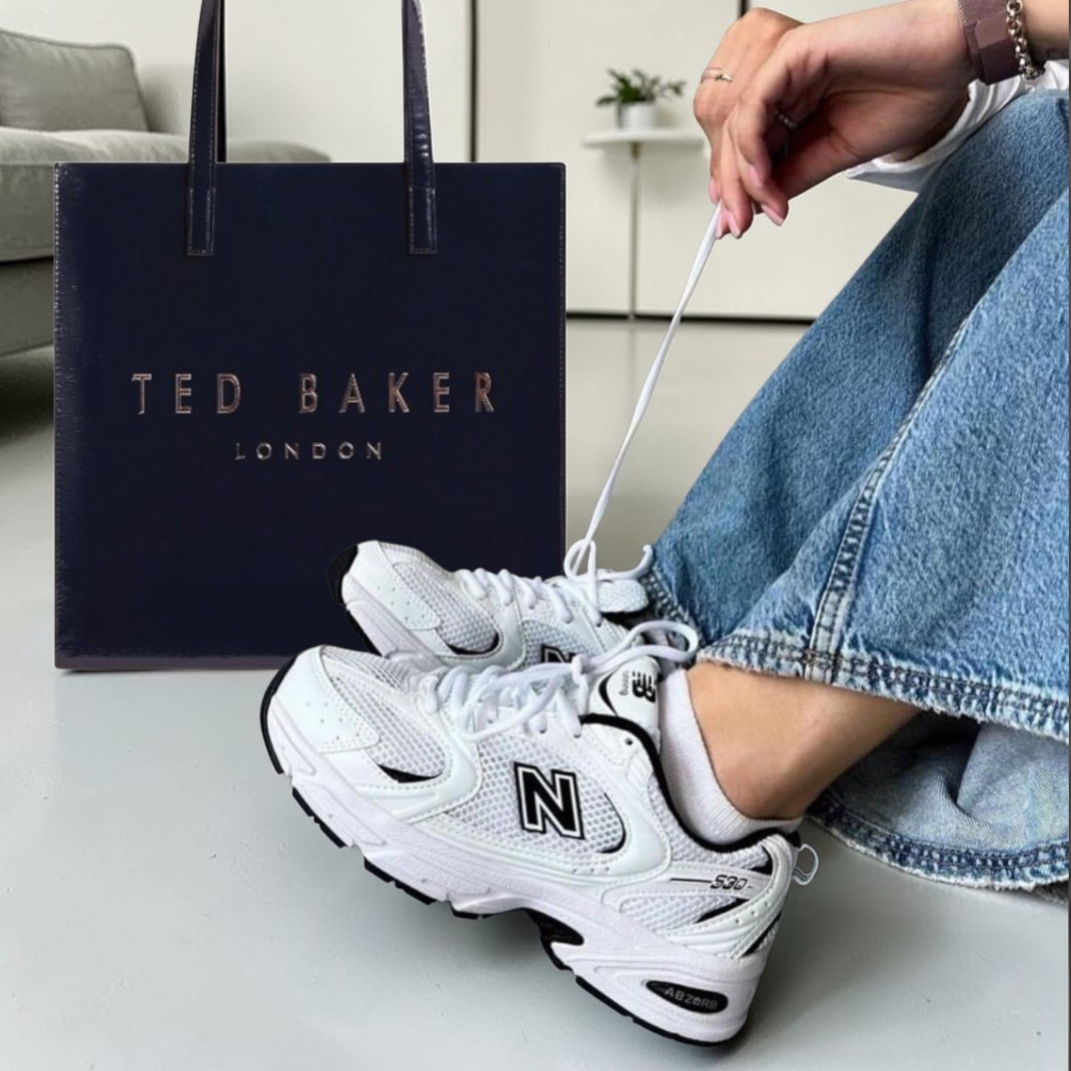 Σετ γυναικείο με έκπτωση. Αποτελείται από Ted Baker γυναικεία τσάντα ώμου και New Balance 530 γυναικείο sneaker.