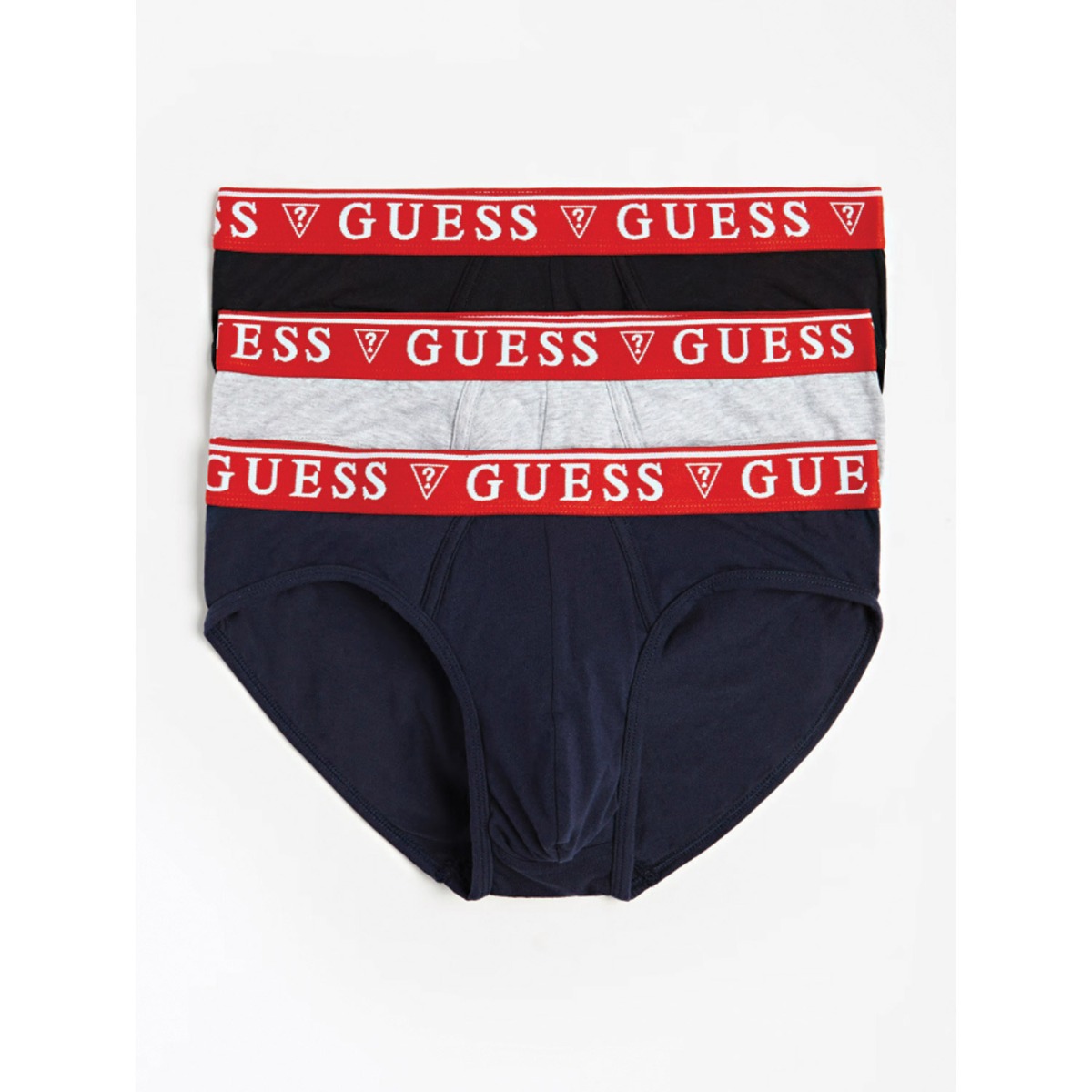 Guess ανδρικά slip 3pack σε γκρι, μαύρο και μπλε χρώμα κατασκευασμένα από 95% βαμβάκι και 5% ελαστίνη.