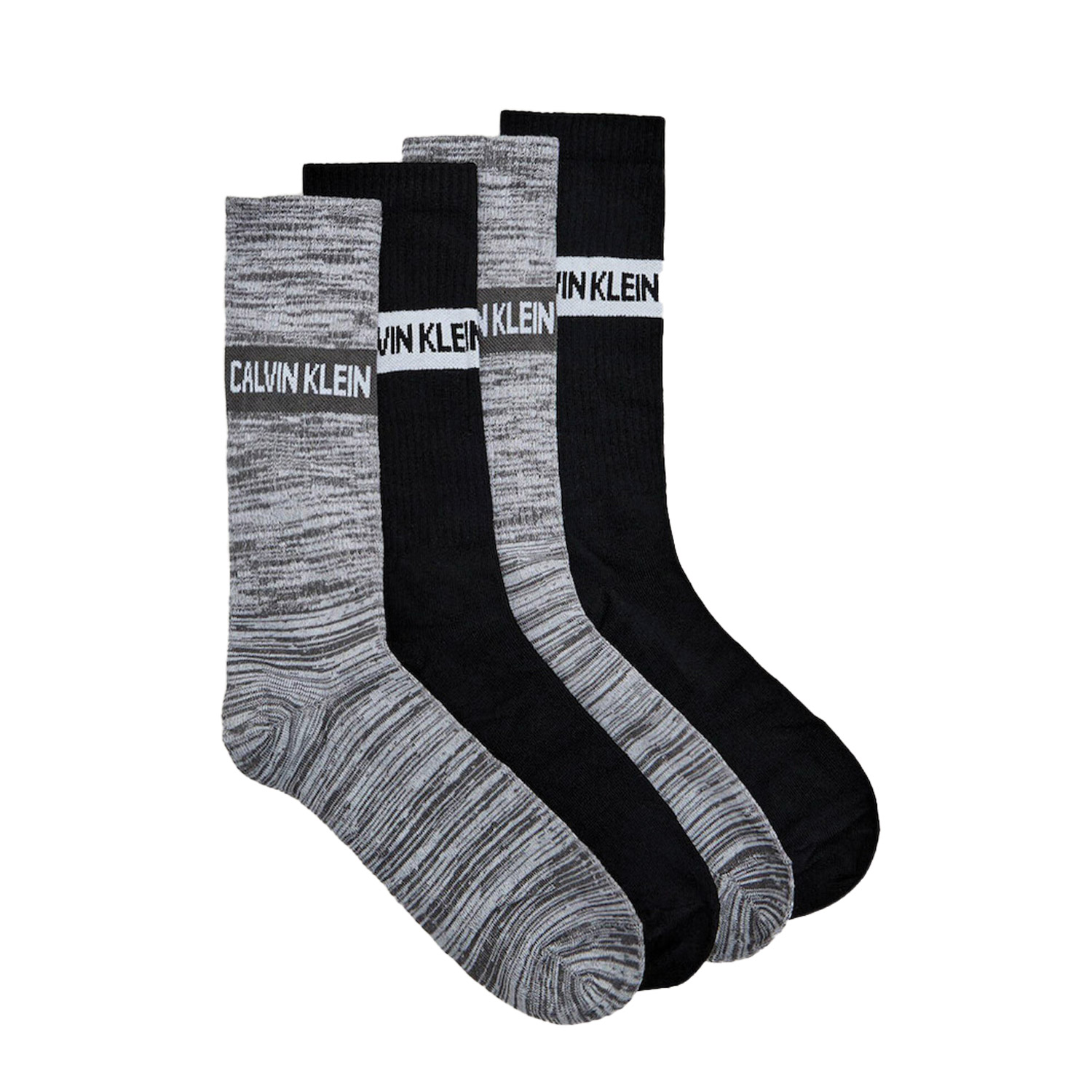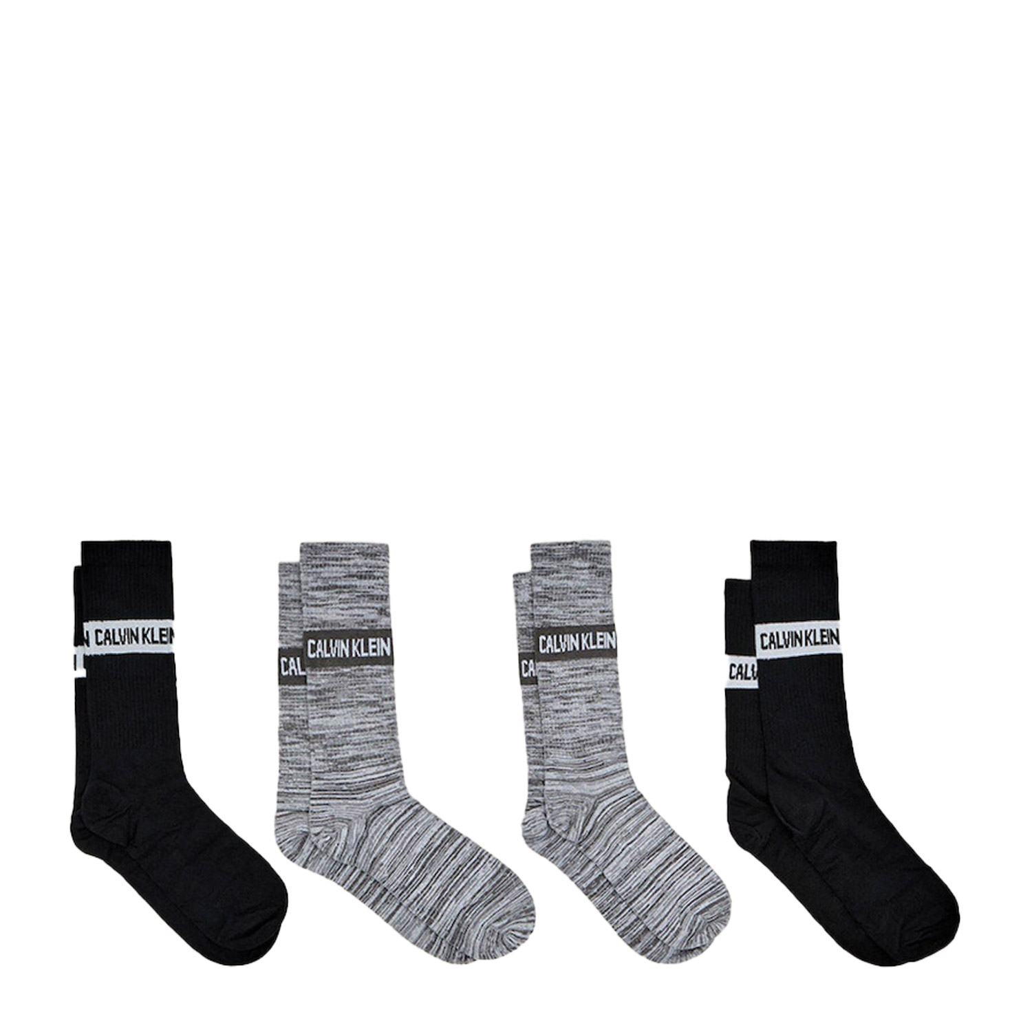 Calvin Klein κάλτσες 4Pack, σε μαύρο-γκρι χρώμα, κατασκευασμένες από 64% μπαουμβόλε, 32% πολυαμίδιο, 4% ελαστάνη