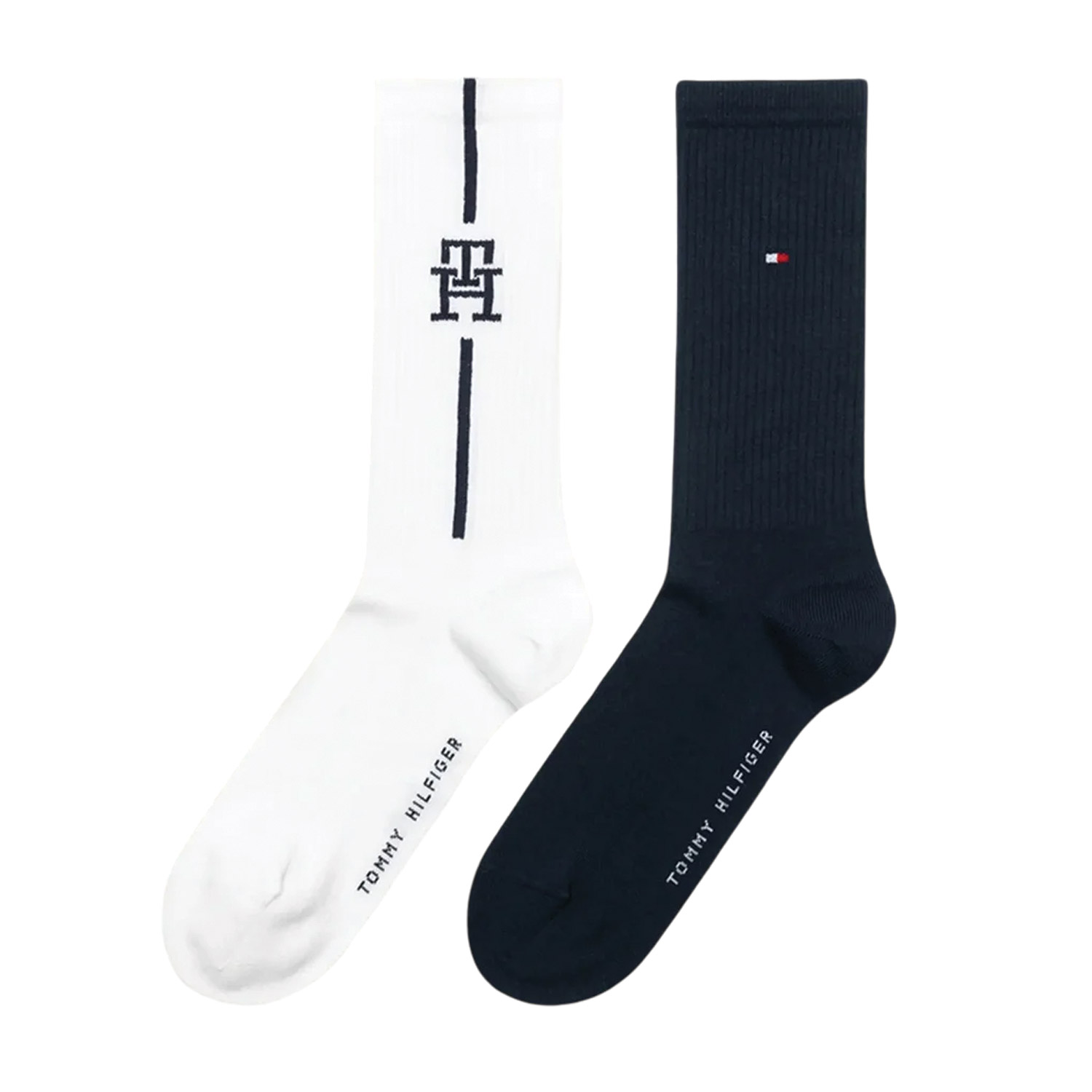 Tommy Hilfiger ανδρικές κάλτσες 2Pack, σε λευκό-μπλε χρώμα, κατασκευασμένες από 88% βαμβάκι, 11% πολυαμίδιο, 1% ελαστάνη.