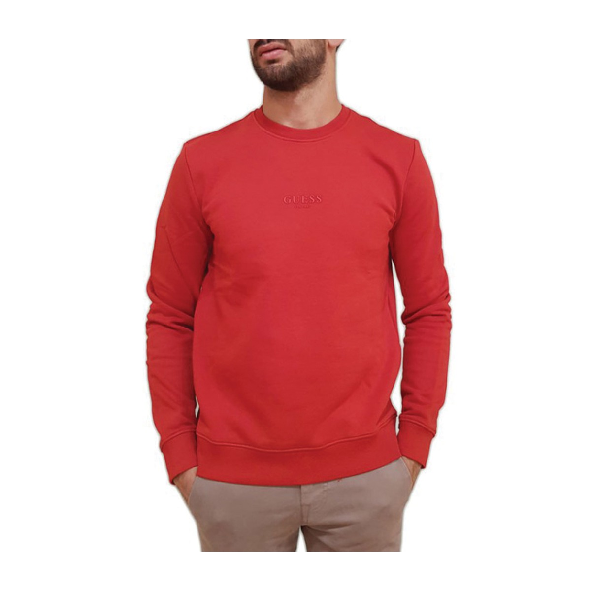 Guess ανδρική μπλούζα με στενή εφαρμογή σε κόκκινο χρώμα κατασκευασμένη από 74% βαμβάκι και 26% πολυεστέρα.