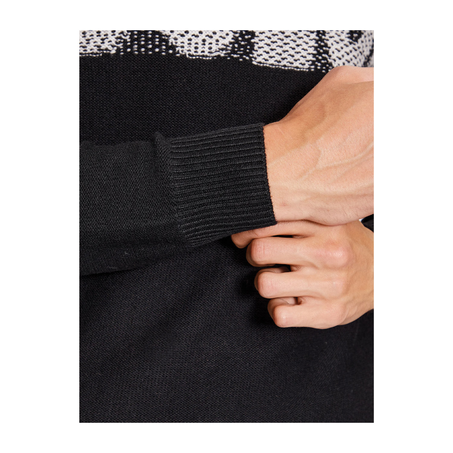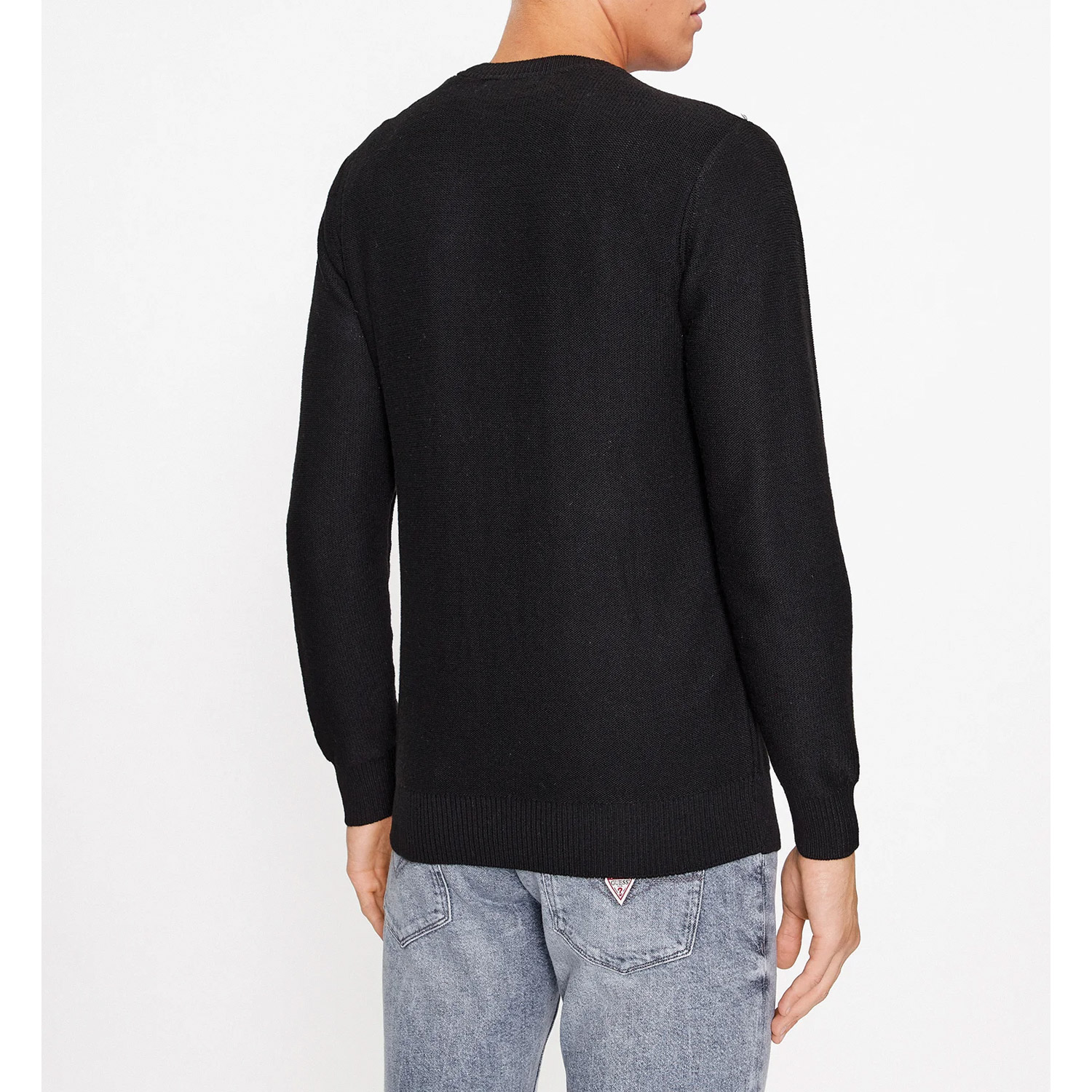Guess ανδρικό πουλόβερ, σε μαύρο χρώμα, κατασκευασμένο από 50% πολυεστέρα, 40% πολυαμίδιο, 5% μετάξι, 5% μαλλί.