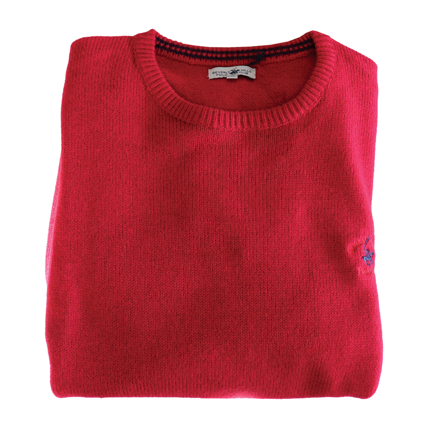 Beverly Hills Polo Club ανδρικό πουλόβερ σε κόκκινο χρώμα κατασκευασμένο από 80% ακρυλικό, 13% μαλλί και 7% νάυλον.