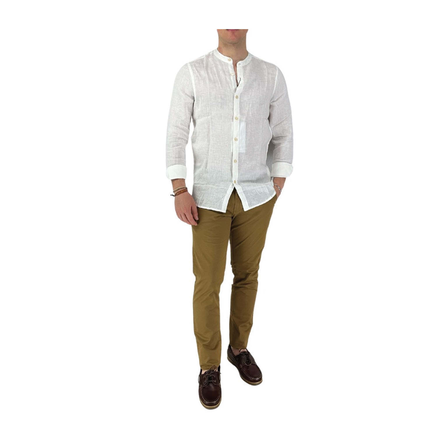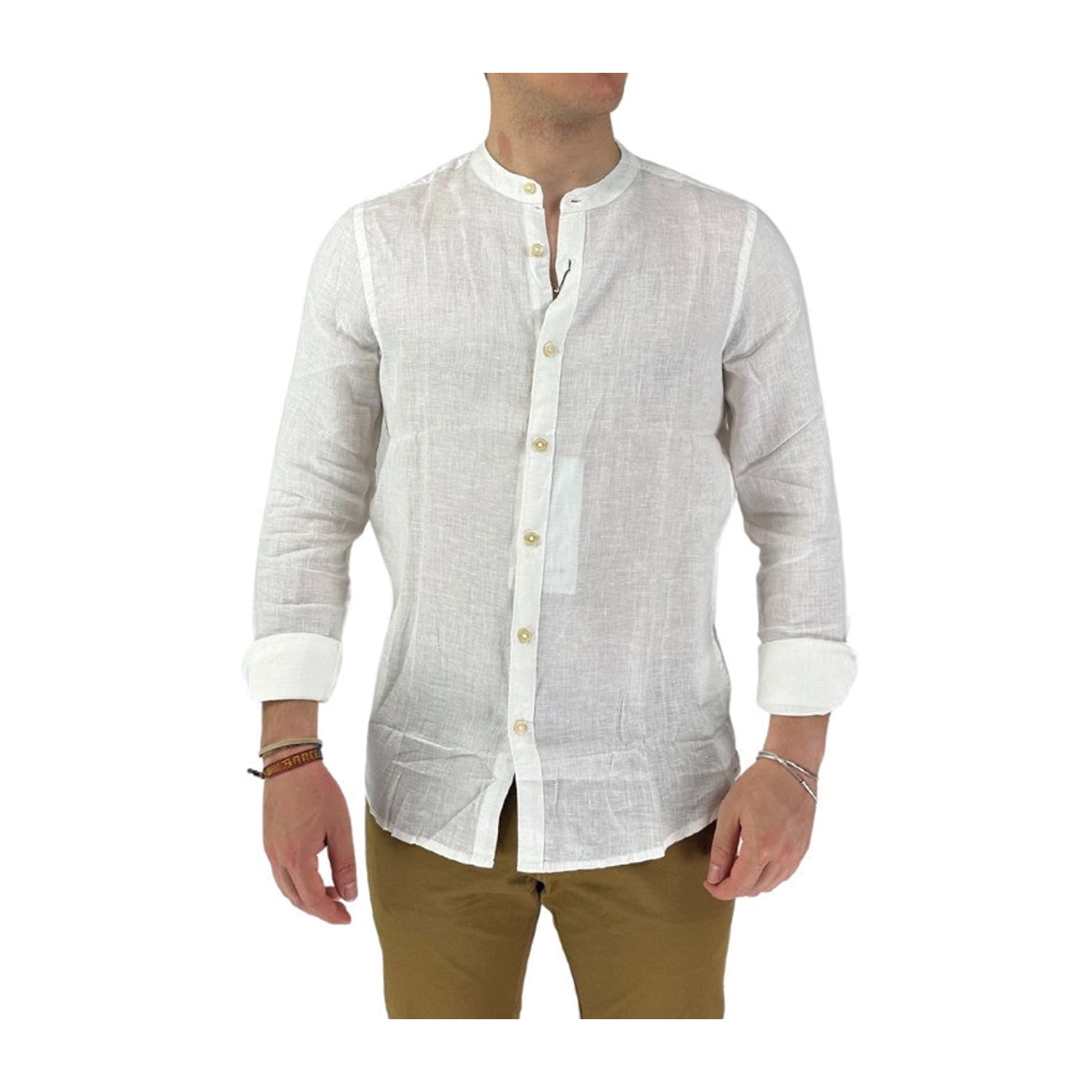 Markup ανδρικό πουκάμισο, σε λευκό χρώμα, κατασκευασμένο από 100% λινό.