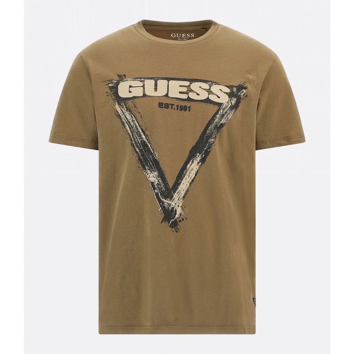 Guess ανδρική μπλούζα σε λαδί χρώμα κατασκευασμένη από 100% βαμβάκι.