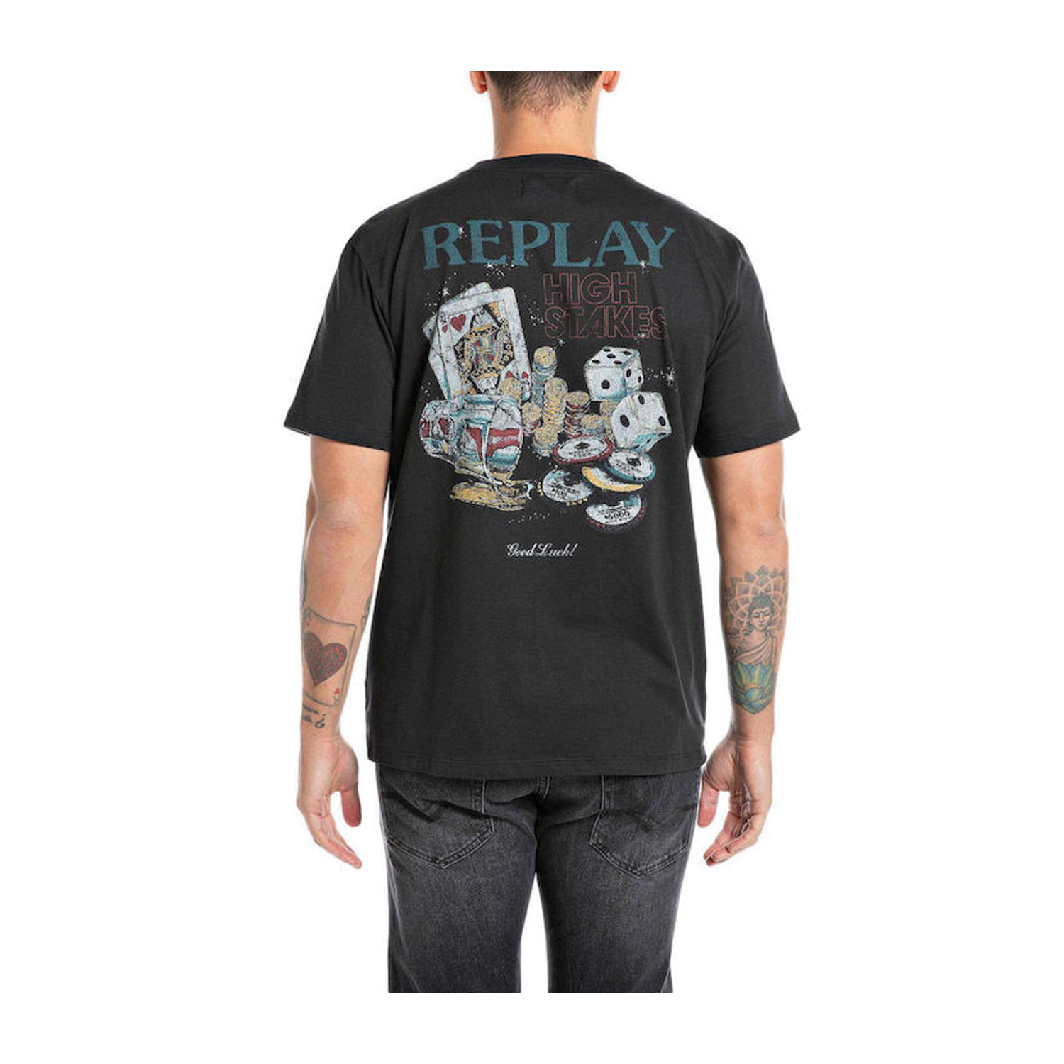 Replay ανδρικό t-shirt, σε μαύρο χρώμα, κατασκευασμένο από 100% βαμβάκι.