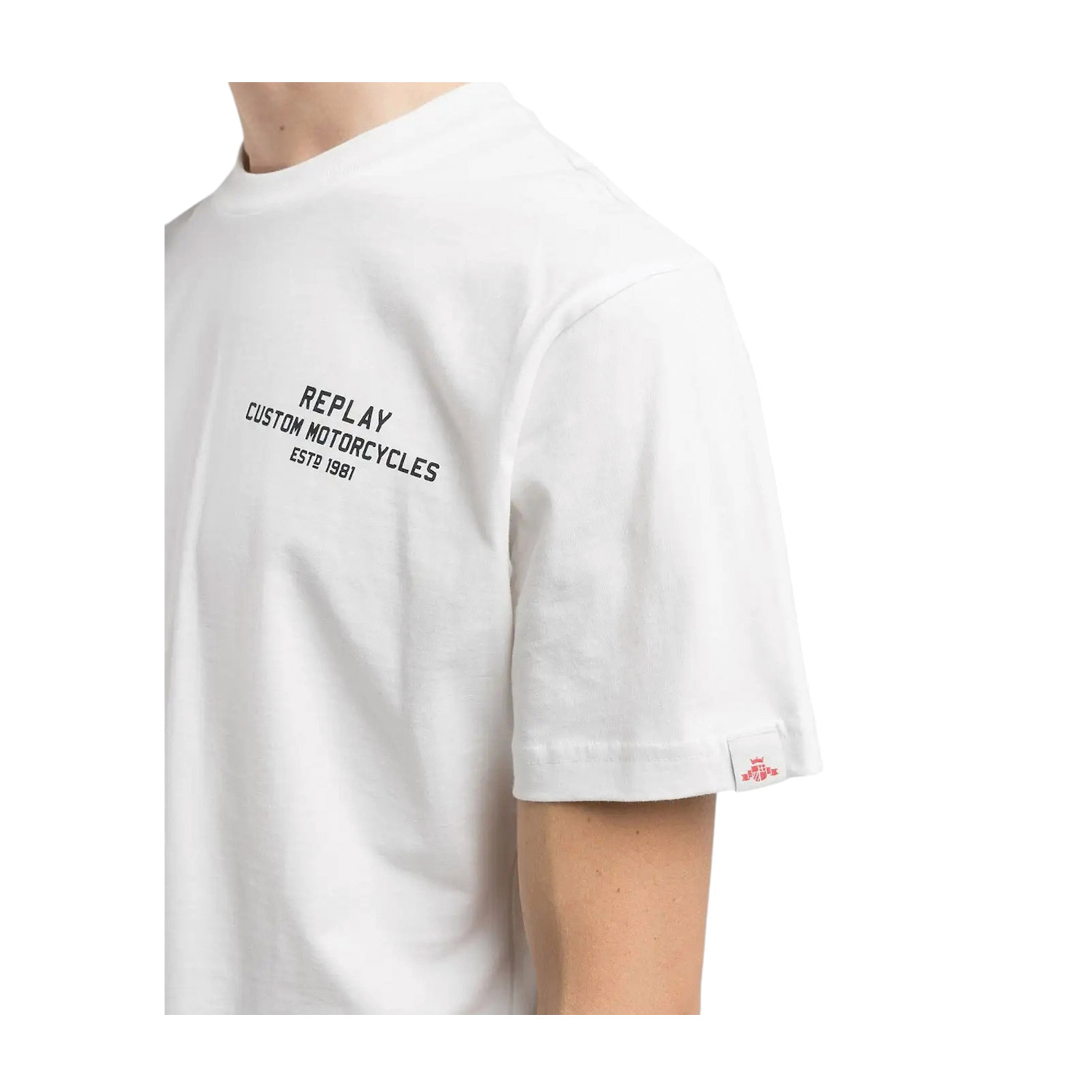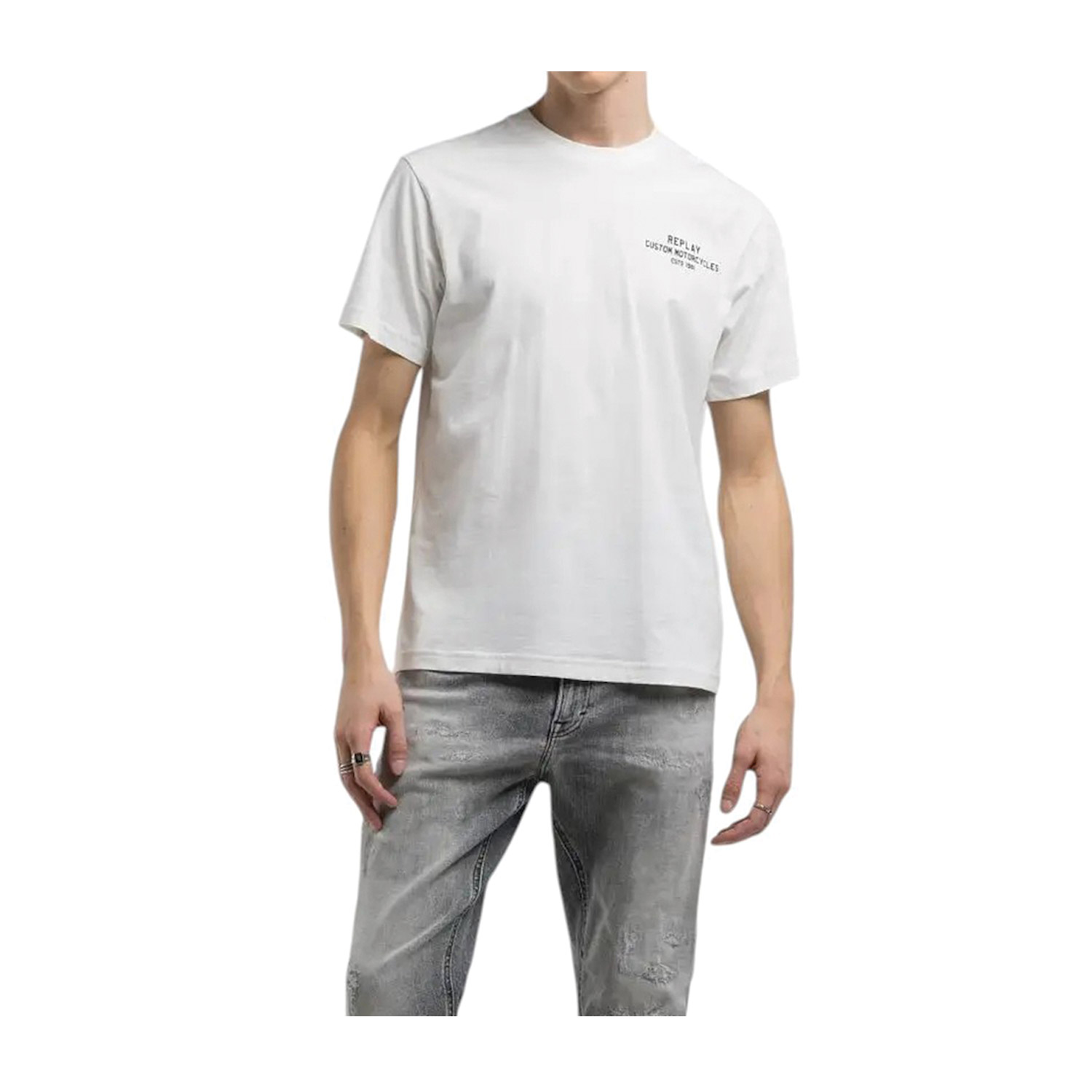 Replay ανδρικό t-shirt, σε λευκό χρώμα, κατασκευασμένο από 100% βαμβάκι.
