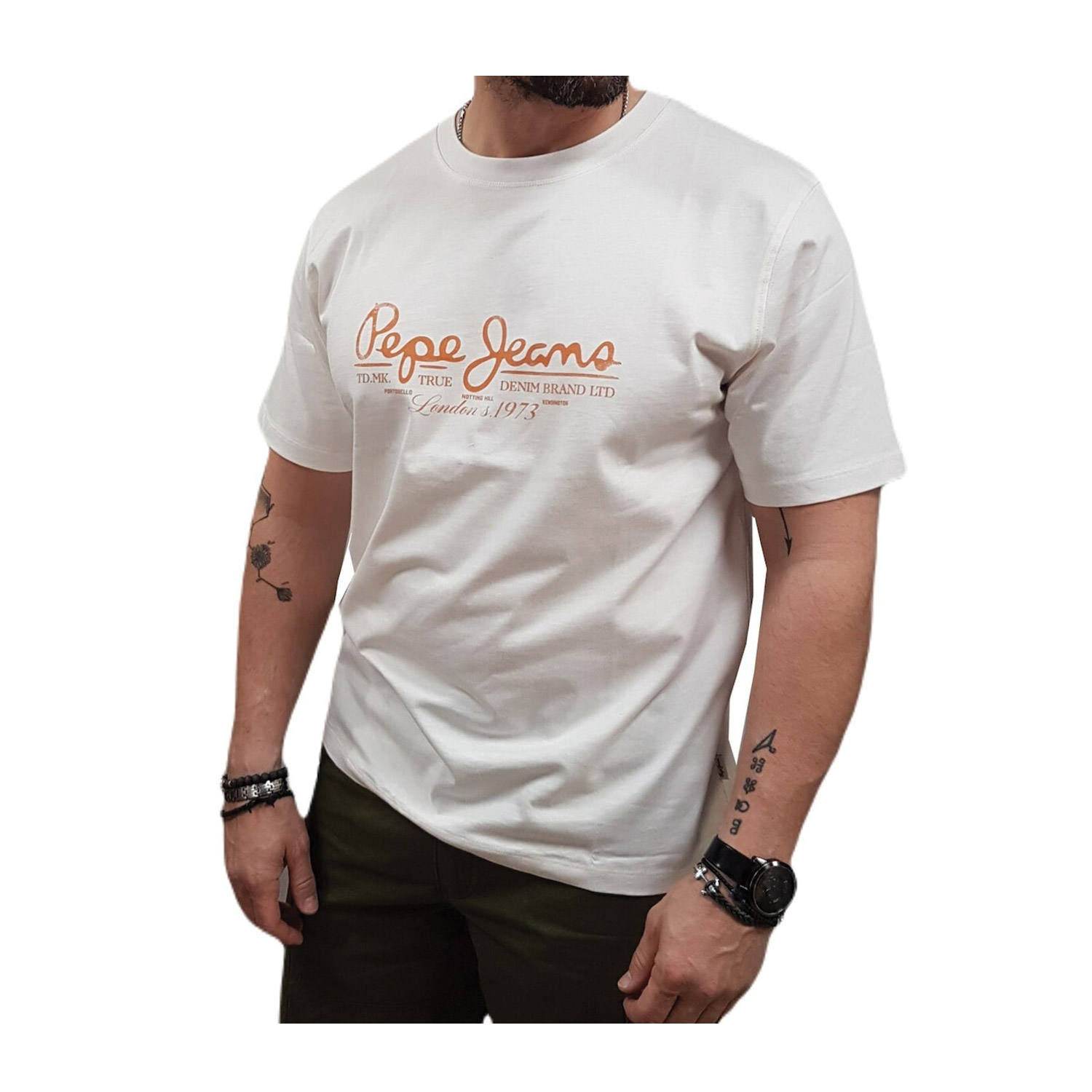 Pepe Jeans ανδρικό t-shirt, σε off-white χρώμα, κατασκευασμένο από 100% βαμβάκι.