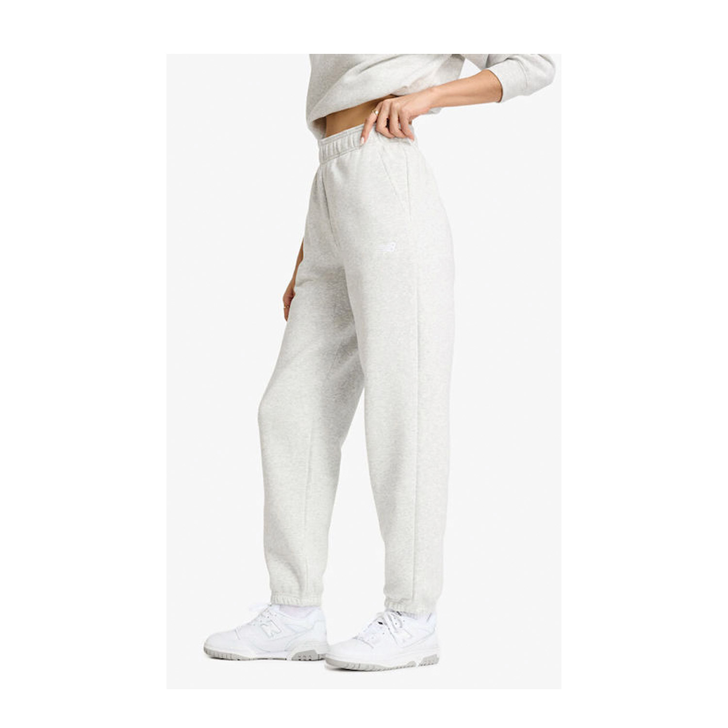 New Balance γυναικεία φόρμα, σε ανοικτό γκρι χρώμα, κατασκευασμένη από 60% βαμβάκι, 40% ανακυκλωμένος πολυεστέρας.