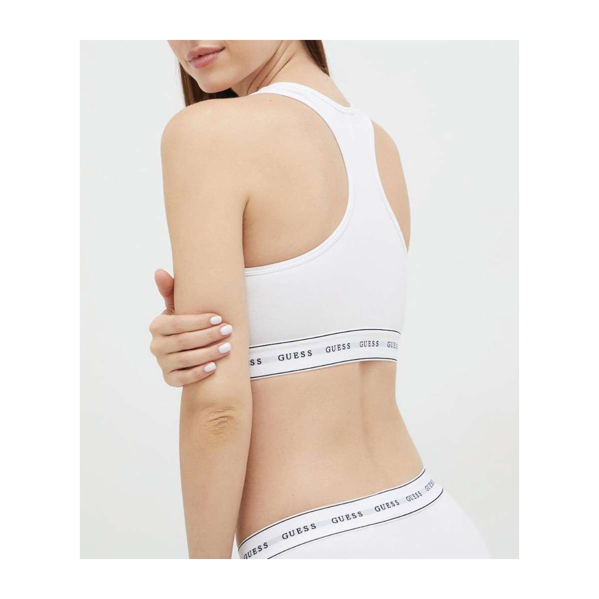 Guess γυναικείο μπουστάκι σε λευκό χρώμα κατασκευασμένο από 55% βαμβάκι, 37% modal και 8% ελαστίνη.