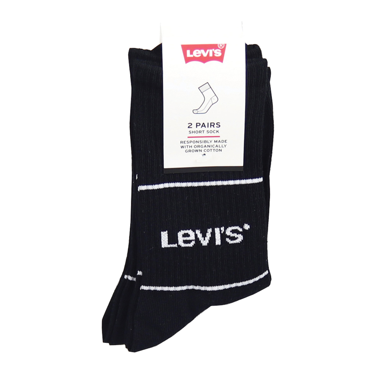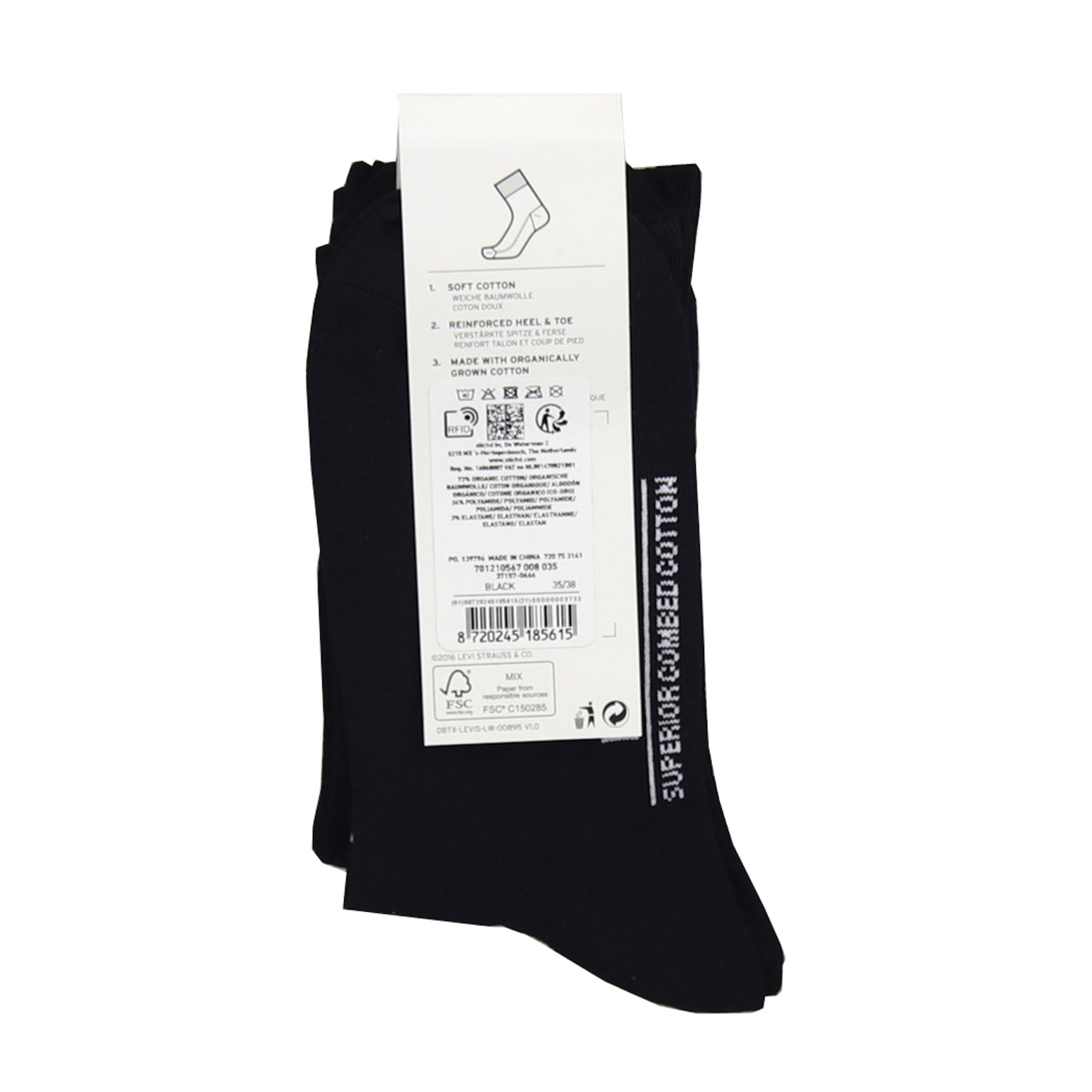 Levi's κάλτσες 2pack, σε μαύρο χρώμα, κατασκευασμένες από 73% βιολογικά καλλιεργημένο βαμβάκι, 24% πολυαμίδιο, 3% ελαστάνη.