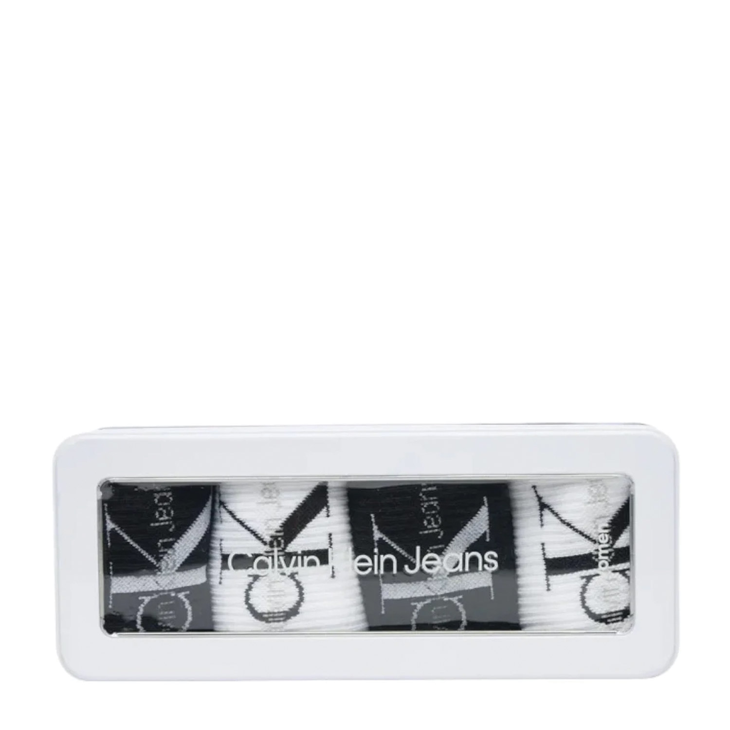 Calvin Klein γυναικείες κάλτσες 4Pack, σε λευκό-μαύρο χρώμα, κατασκευασμένες από 66% βαμβάκι, 31% πολυαμίδιο, 3% ελαστάνη.