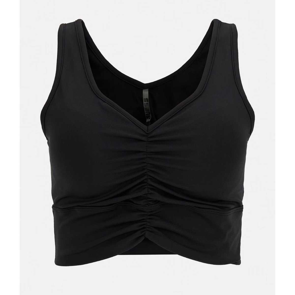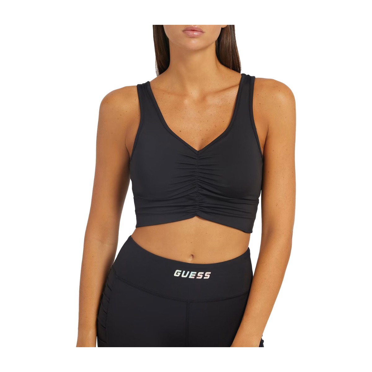 Guess γυναικείο top σε μαύρο χρώμα κατασκευασμένο από 77% πολυεστέρα και 22% ελαστίνη.