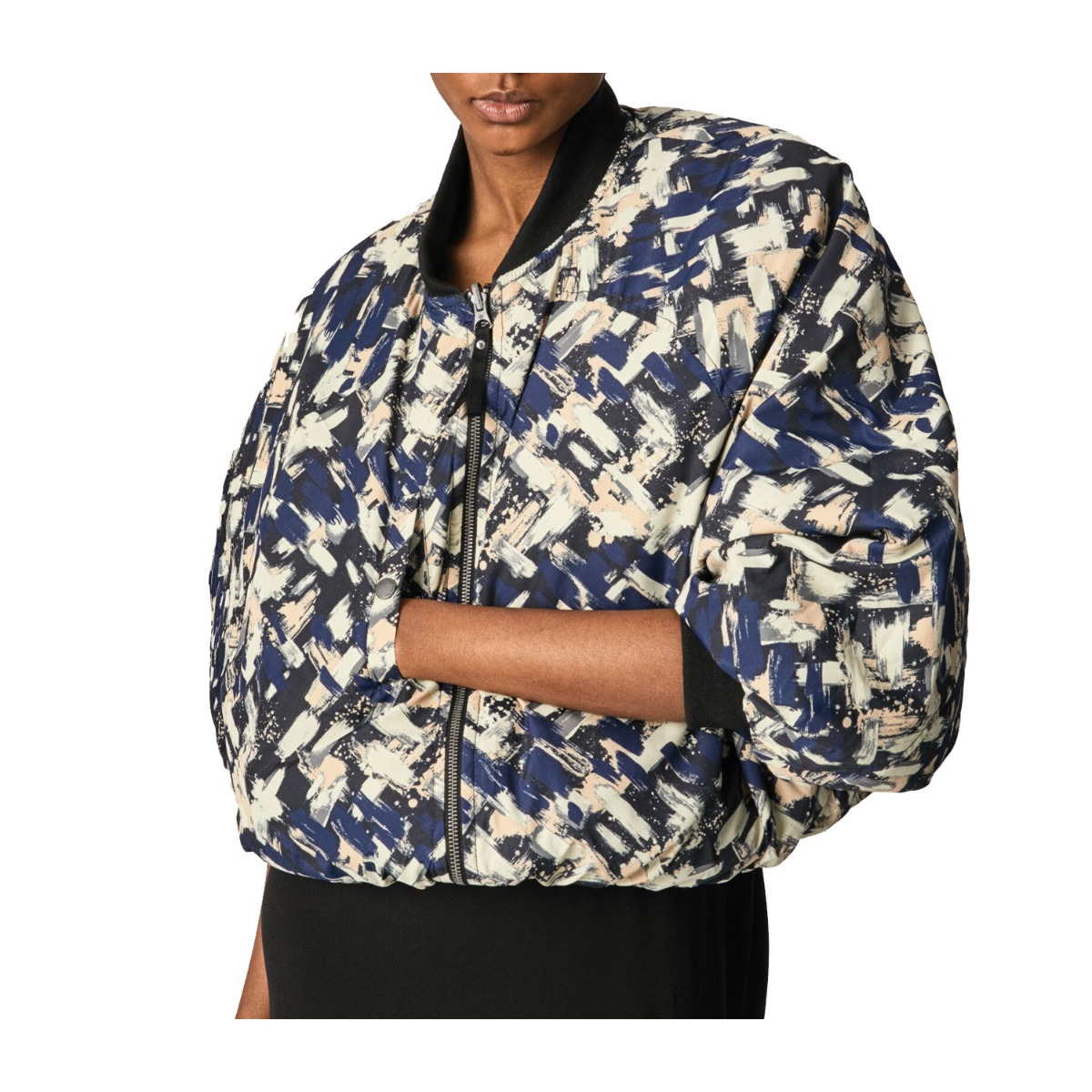 Pepe Jeans γυναικείο μπουφάν διπλής όψεως σε μαύρο και πολύχρωμο, κατασκευασμένο από 100% πολυεστέρα.