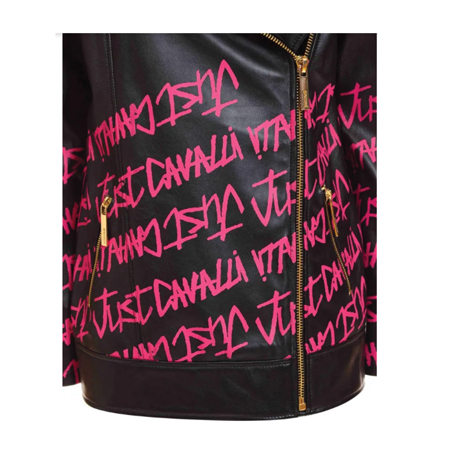 Just Cavalli γυναικείο μπουφαν, σε μαύρο χρώμα, κατασκευασμένο από δέρμα.
