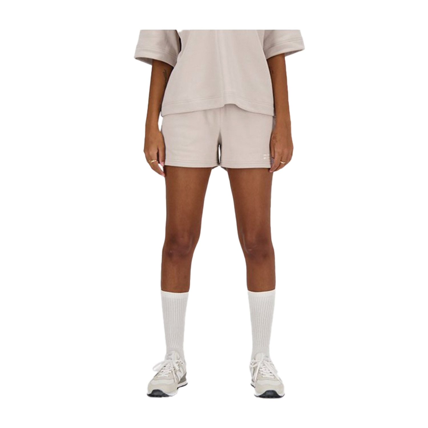 New Balance γυναικείο σορτς σε μπεζ χρώμα κατασκευασμένο από 60% βαμβάκι και 40% πολυεστέρα.