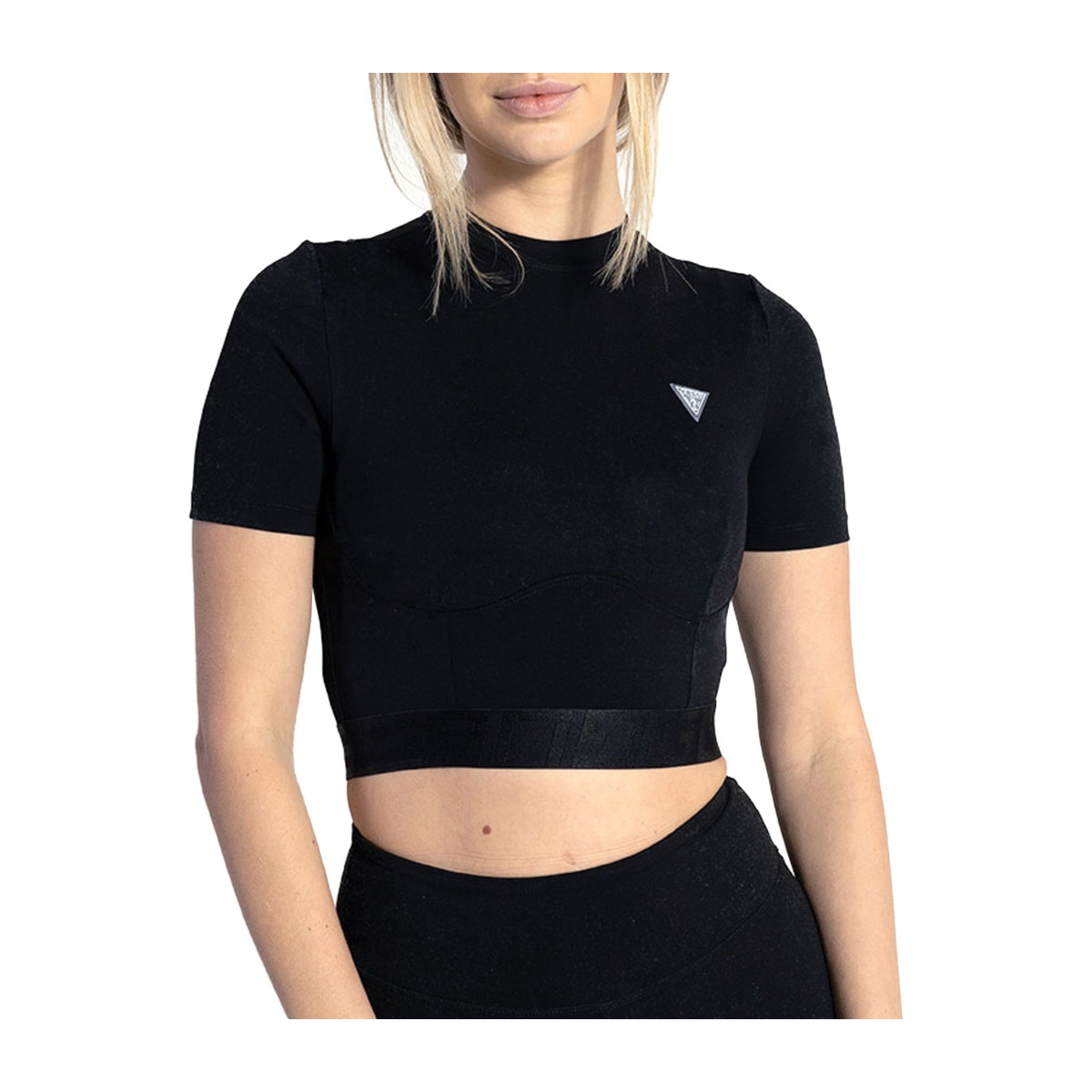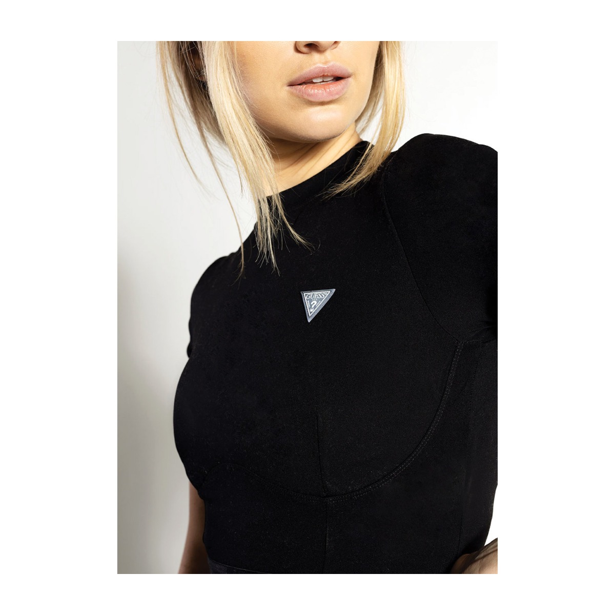 Guess γυναικεία μπλούζα σε μαύρο χρώμα κατασκευασμένη από 82% πολυαμίδιο και 18% ελαστίνη.