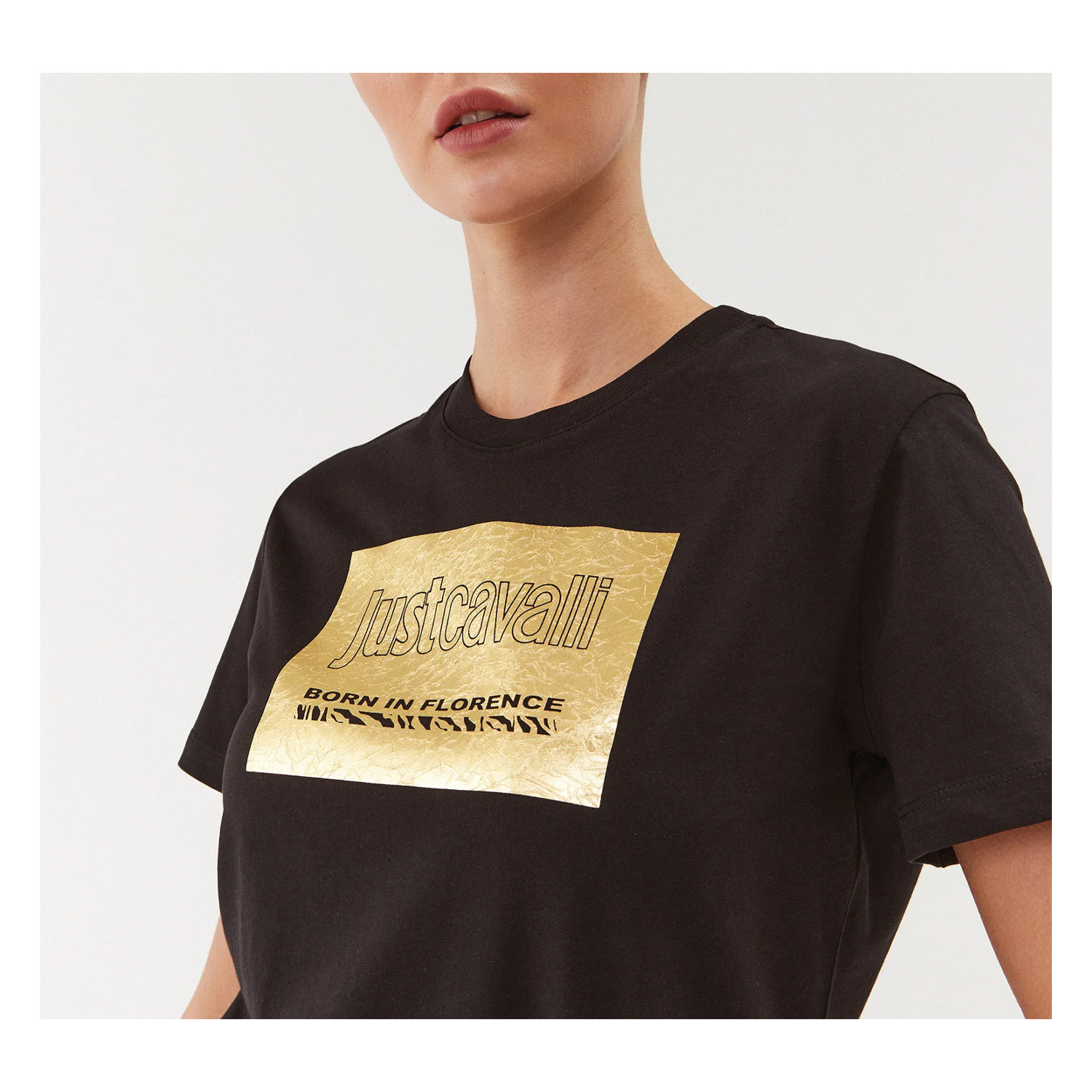 Just Cavalli γυναικείο T-shirt, σε μαύρο χρώμα, κατασκευασμένο από 100% βαμβάκι.