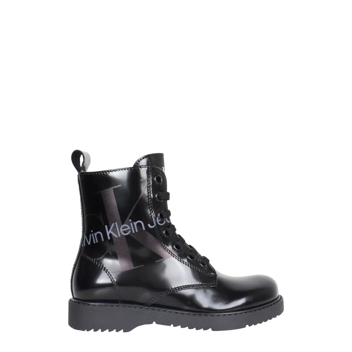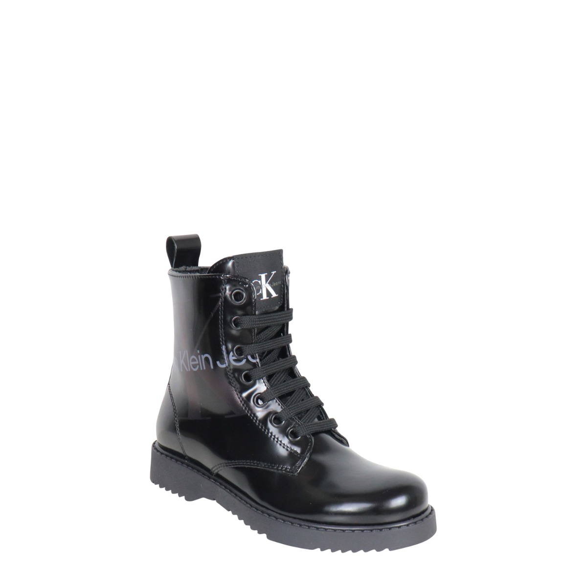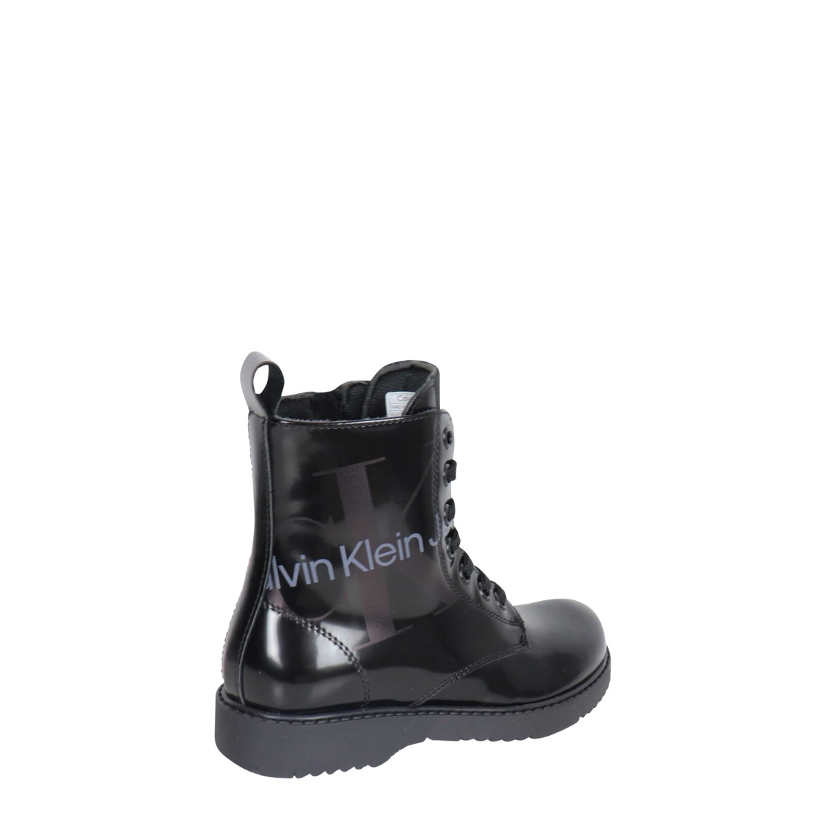 Calvin Klein παιδικό μποτάκι σε μαύρο χρώμα κατασκευασμένο από λουστρίνι, με δερμάτινο πατάκι. Ύψος σόλας 2εκ.